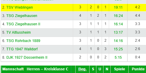 Nachdem unsere TT Herren mit 2 Siegen aus 3 Spielen gut in die neue Verbandsrunde gestartet waren, stand nun ein Heimspiel gegen Edingen/Neckarhausen auf dem Programm. Wie oftmals konnten wir auf unsere Stärken in den Doppeln bauen und gingen mit 2:0 in Führung. Zwischenzeitlich stand es mit 3:2 doch relativ knapp, aber am Ende war ein 7:3 Heimsieg eingefahren, sodass wir mit nun 6:2 Punkten uns oben in der Tabelle erst mal festsetzen konnten. Bereits am kommenden Montag geht es mit einem Auswärtsspiel bei der TTV HD weiter.
